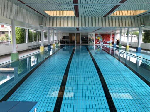 La piscine possède un bassin semi-olympique (25 m) avec 4 couloirs de nage (1,30 m à 2,20 m de profond),